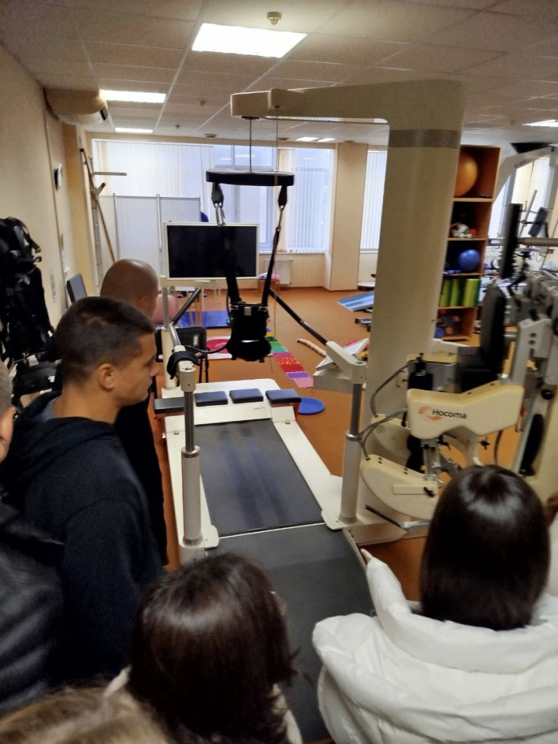 Під час зустрічі здобувачі мали можливість дізнатися про сучасні технології відновлення, спостерігати за роботою фахівців-реабілітологів, відвідати зали з новітнім обладнанням і побачити практичне застосування методик лікувальної фізкультури, кінезіотерапії та механотерапії.