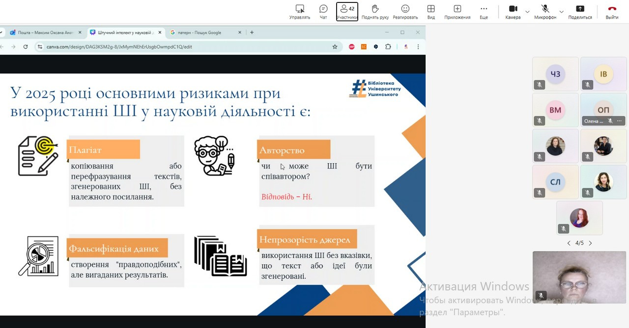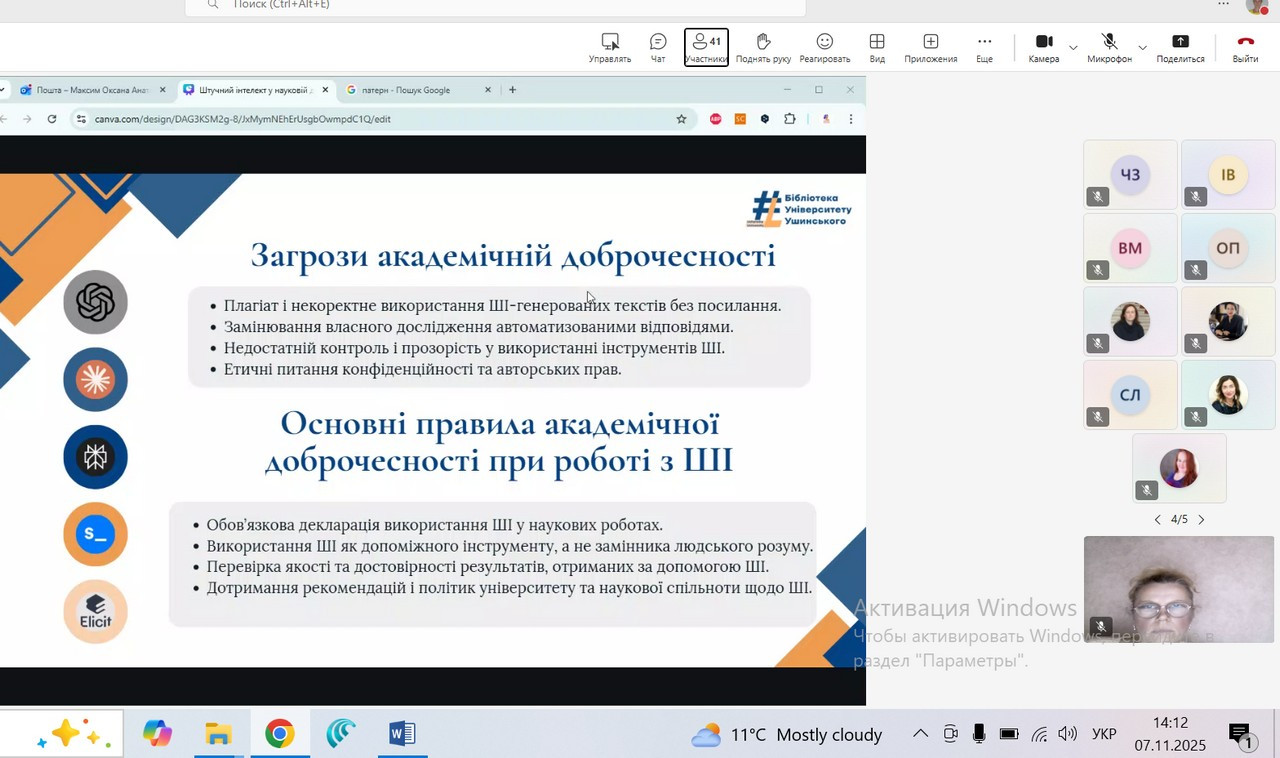 7 листопада 2025 р. здобувачі вищої освіти, які навчаються за другим (магістерським) рівнем ОПП Середня освіта (Фізична культура) відвідали лекцію з теми «ШІ у науковій діяльності: як не порушувати академічну доброчесність», яку проводила директор бібліотеки Університету Ушинського Максим Оксана.
