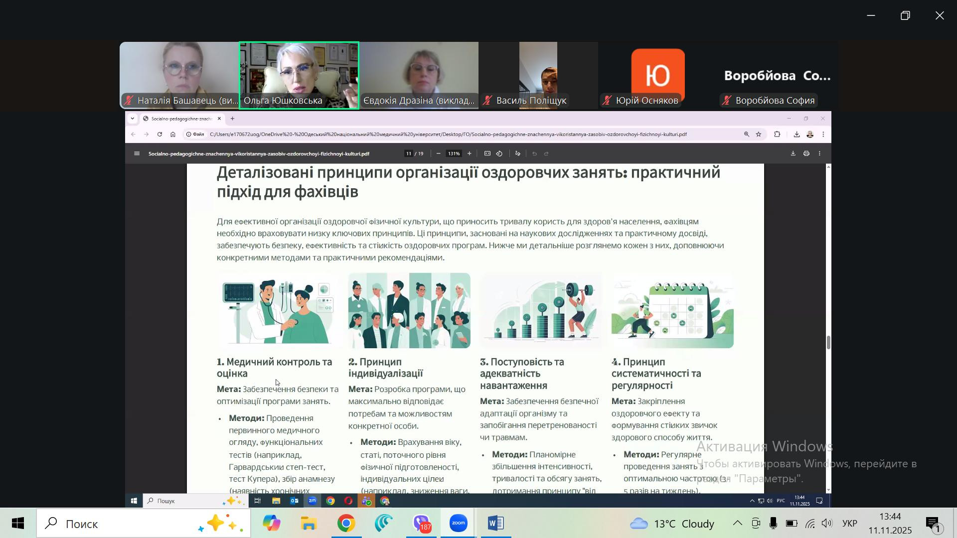Особливу увагу було приділено педагогічним аспектам організації занять оздоровчої спрямованості, питанням адаптації навантажень до різних вікових груп, методам контролю інтенсивності фізичних навантажень, принципам побудови ефективних оздоровчих програм. Під час лекції лекторка акцентувала на ролі фахівця з фізичної культури у формуванні свідомого ставлення до власного здоров’я та популяризації здорового способу життя серед молоді.