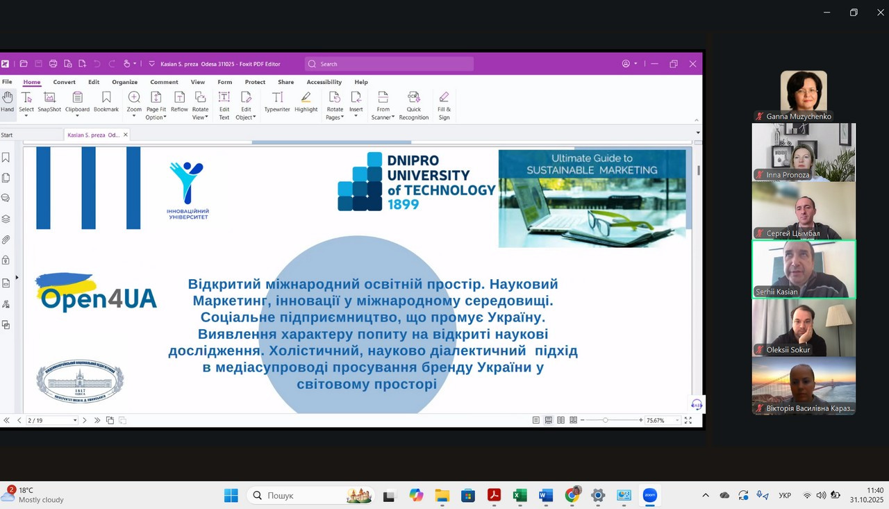 31 жовтня 2025 року в Державному закладі «Південноукраїнський національний педагогічний університет імені К. Д. Ушинського» відбулася гостьова лекція на тему «Формування й просування на міжнародних ринках бренду України». Захід організувала кафедра політичних наук і права у співпраці з ГО «Інноваційний університет» та її Одеським і Дніпровським осередками.
