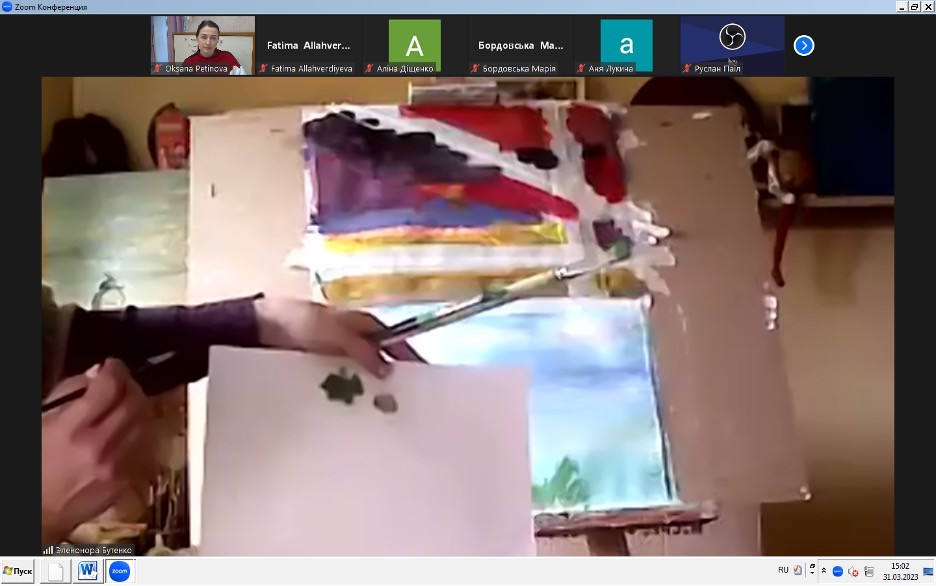 Під час заходу було розглянуто теоретичні аспекти розвитку творчої особистості різними засобами, в тому числі за допомогою методики правопівкульного малювання, що відповідає за творчі процеси; проаналізовано особливості інтуїтивного малювання. Зі студентами проведено цілий ряд різноманітних вправ для активізації роботи правої та лівої півкуль мозку, і майстер-клас: здобувачі зображували абстракцію та пейзаж. Всі працювали із задоволенням, давали своїм роботам назви та обговорювали свої враження. Захід сприяв також розвитку навичок «soft skills».