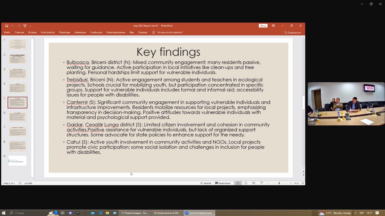 17-18 жовтня 2024 року в змішаному форматі (онлайн/офлайн) відбулася щорічна Міжнародна науково-практична конференція «Посилення консолідації суспільства та ролі людського капіталу на шляху вступу України та республіки Молдова до Європейського Союзу», організаторами якої є кафедра філософії, соціології та менеджменту соціокультурної діяльності Університету Ушинського (завідувач – проф. Євген Борінштейн), Південноукраїнське відділення Соціологічної асоціації України (голова – проф. Олена Лісеєнко), Асоціація соціологів та демографів Молдови (президент – доктор соціології Віктор Мокану).