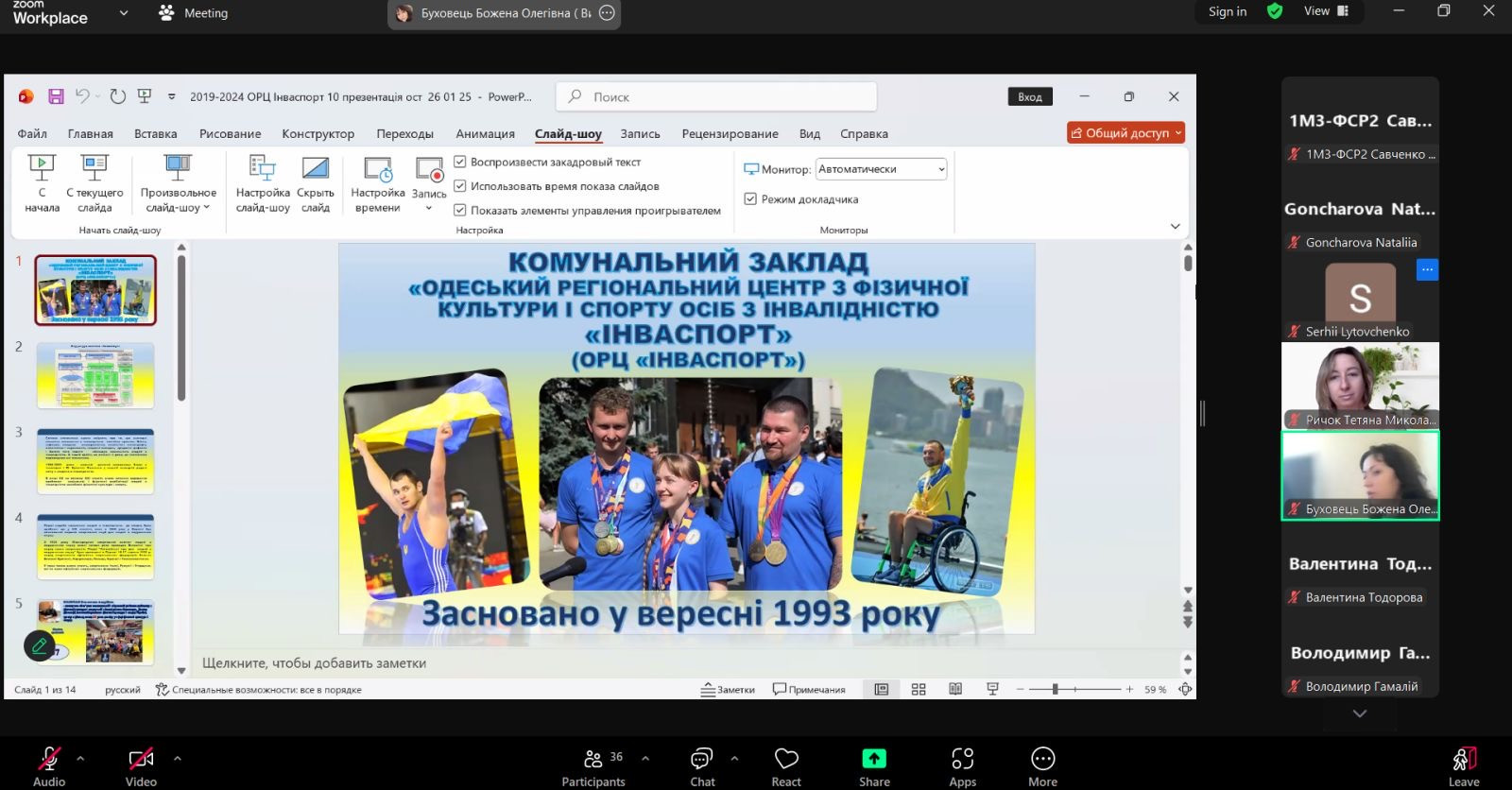Наприкінці лекції обговорювалися перспективи розвитку інваспортув Одесі та області, необхідність створення інклюзивного спортивного середовища та підготовка фахівців з фізичної культури та спорту, здатних працювати з цією категорією населення.