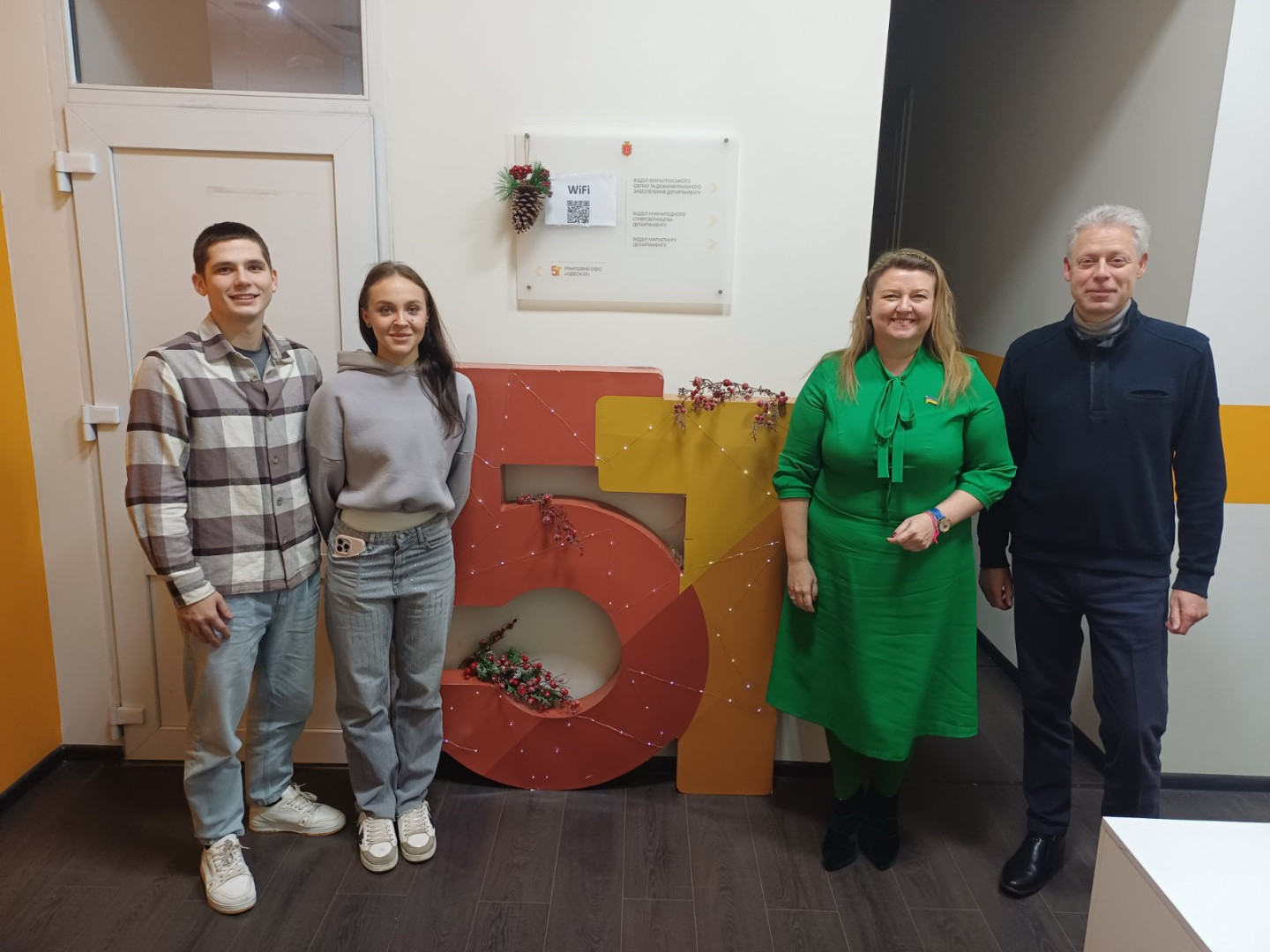 18 грудня здобувачі освіти спеціальності «Публічне управління та адміністрування», члени наукового гуртка за названою спеціальністю Серафима Гавриленко (4 курс) та Богдан Гладкий (3 курс) завітали до комунальної установи Одеської міської ради «Грантовий офіс Одеса 5Т».