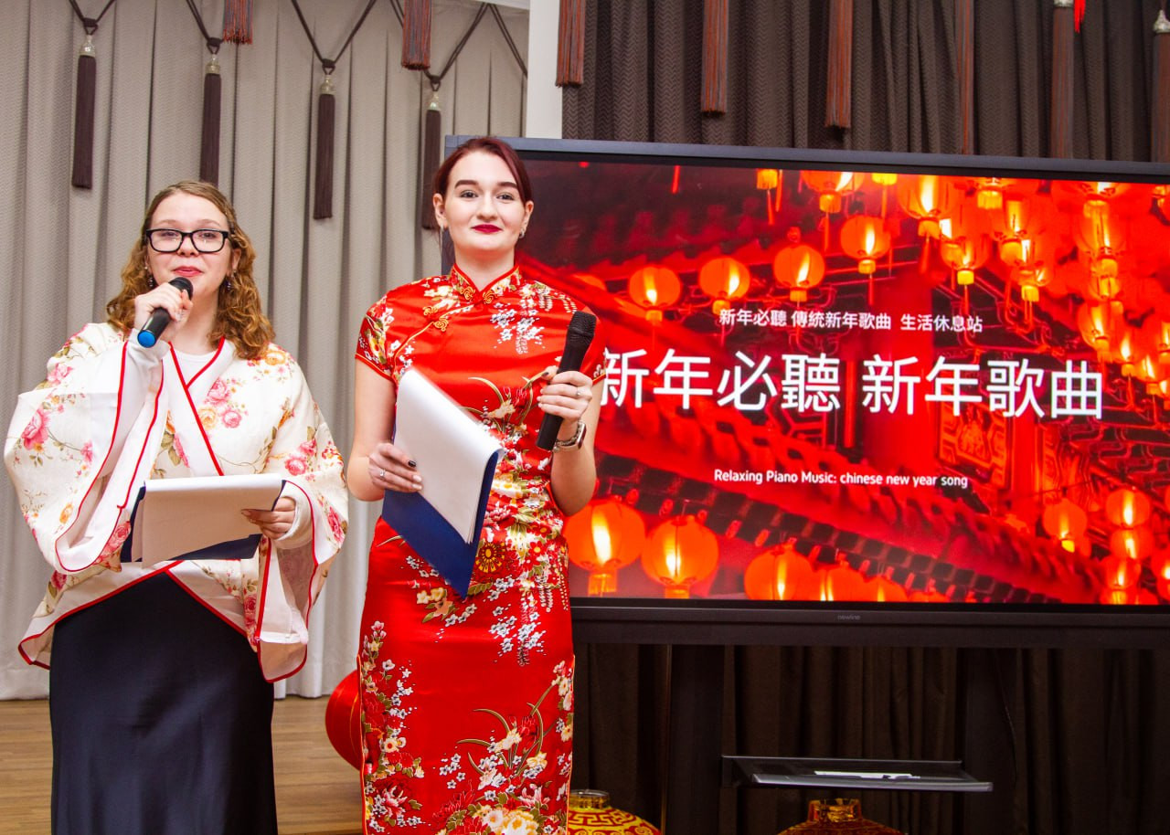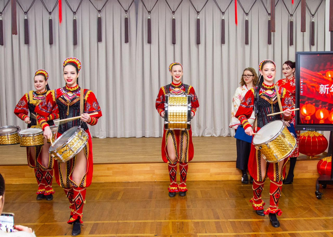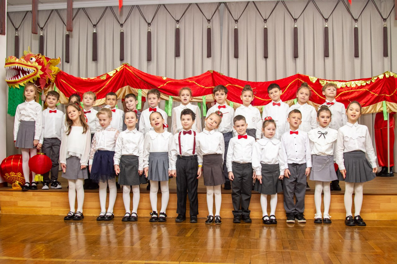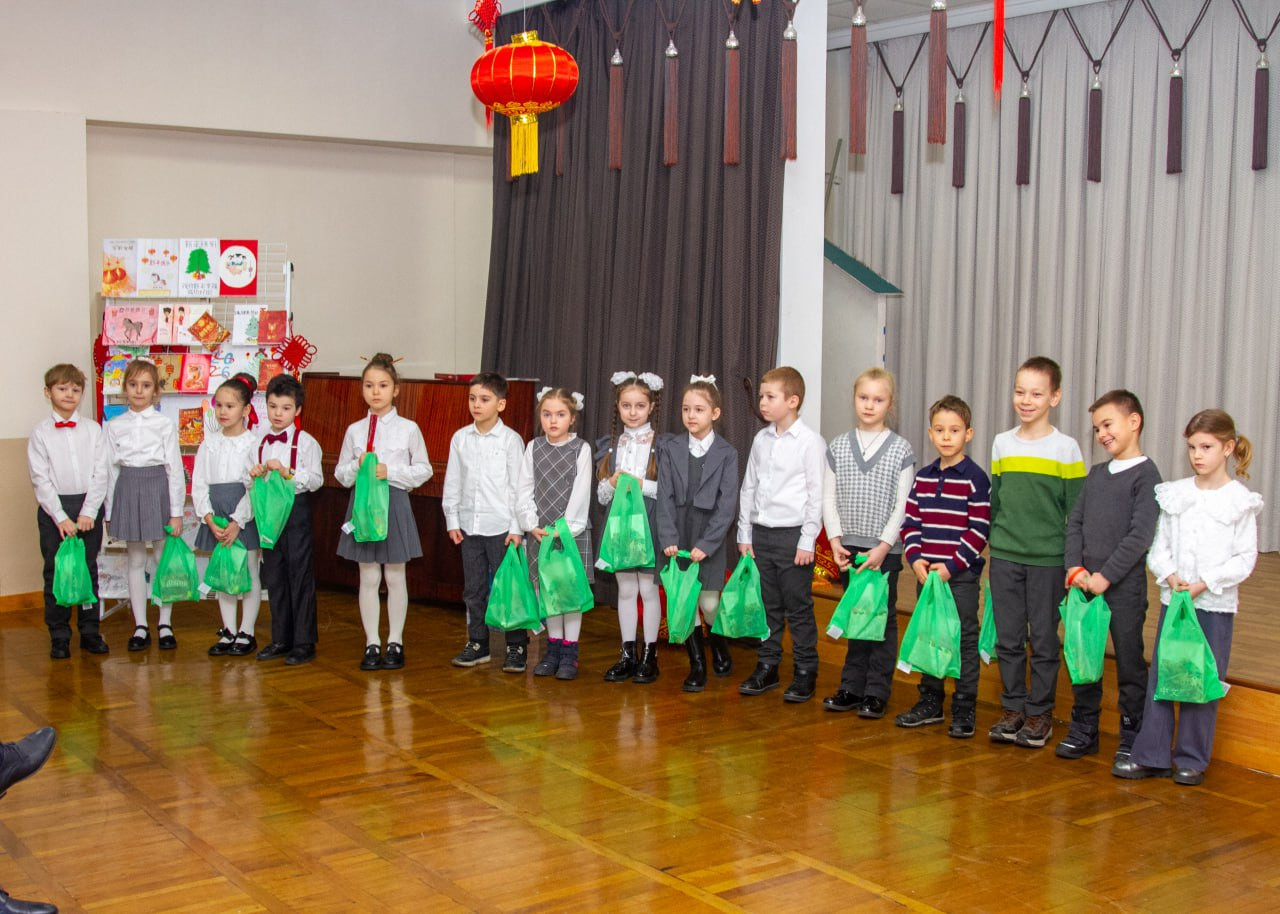 Свято розпочалося яскравим виступом наймолодших учнів 1-В класу, які виконали пісню «Xīnnián hǎo», а символічний китайський дракон додав заходу особливої атмосфери.