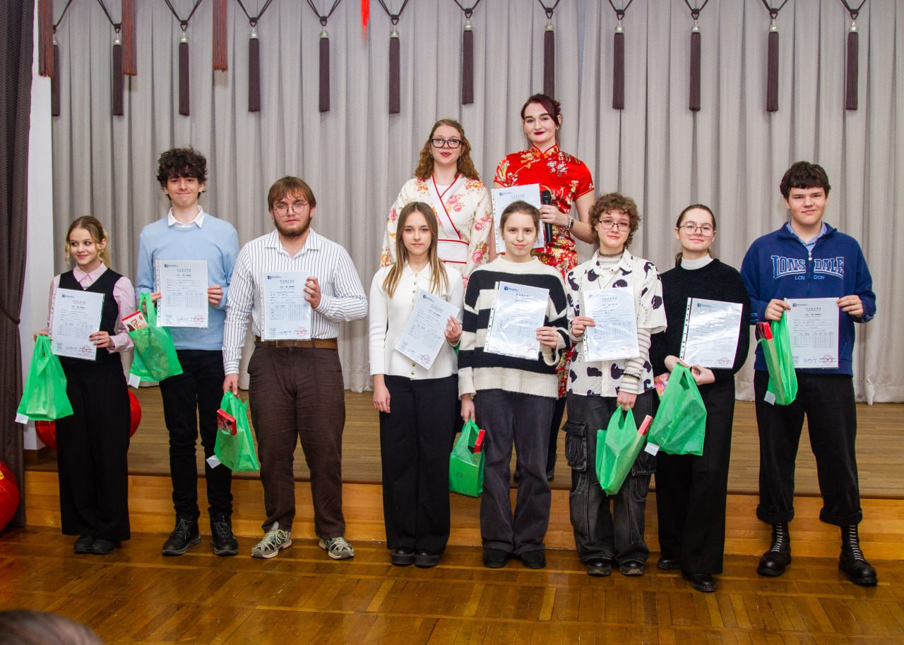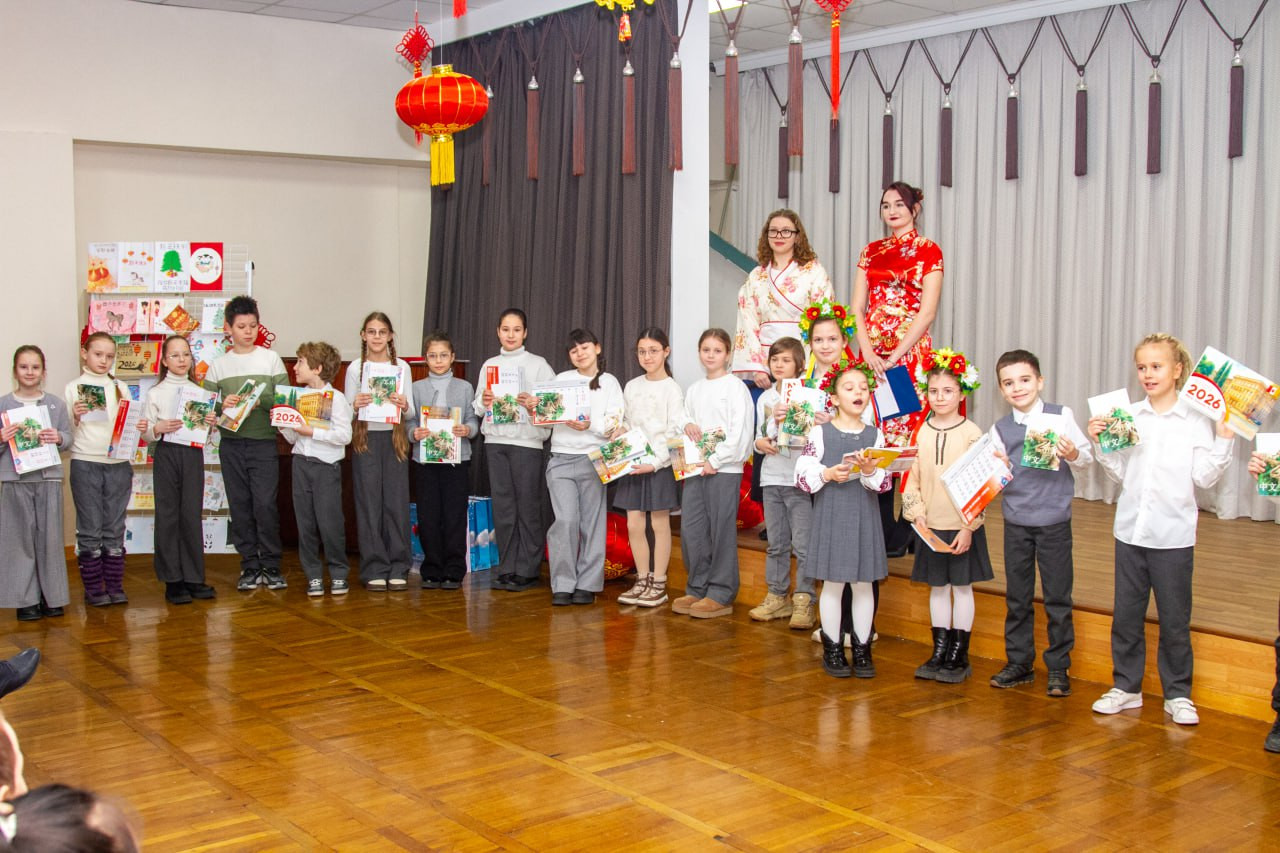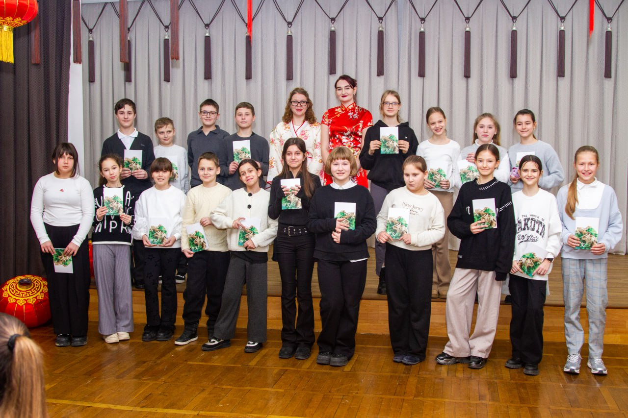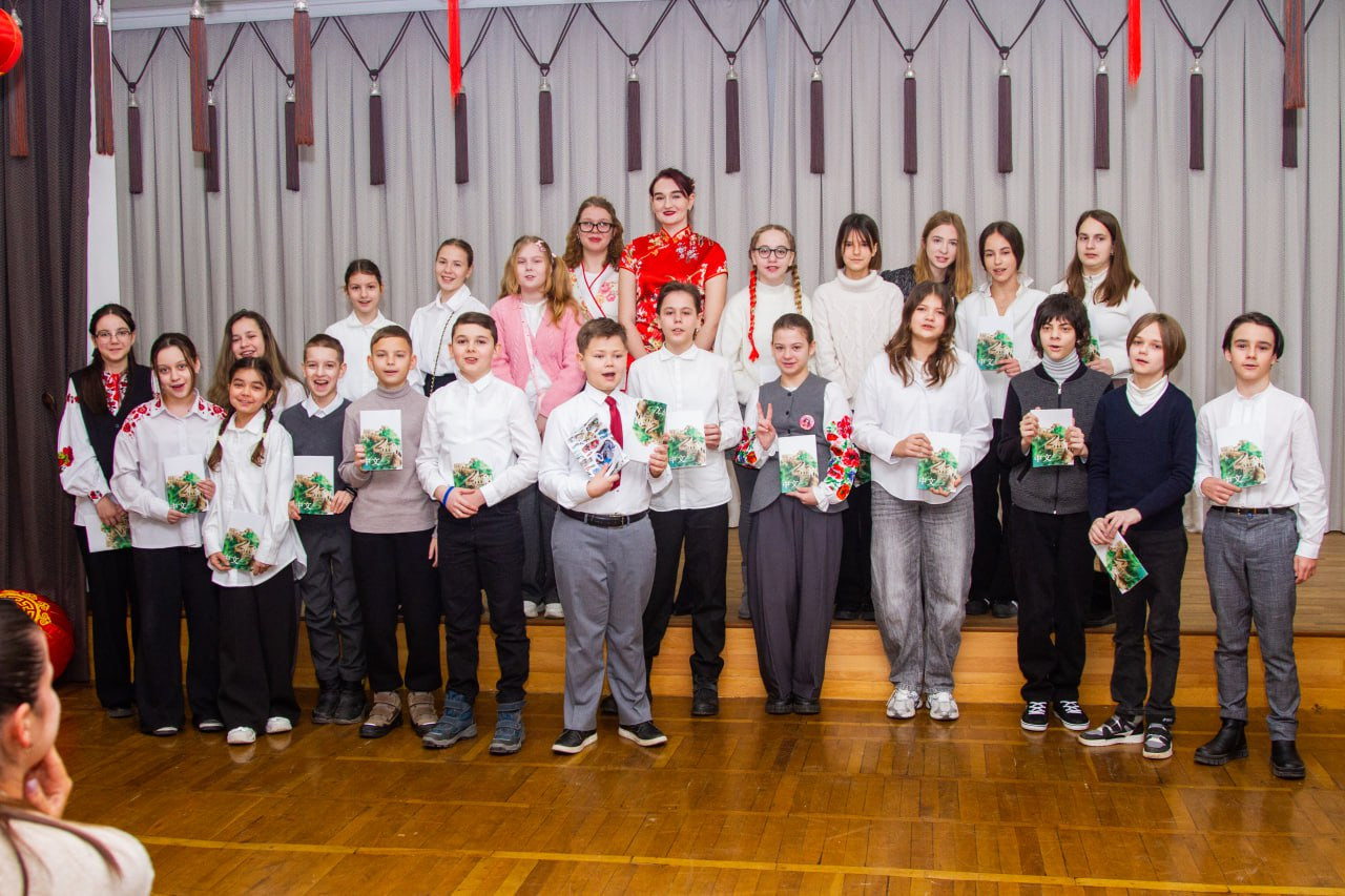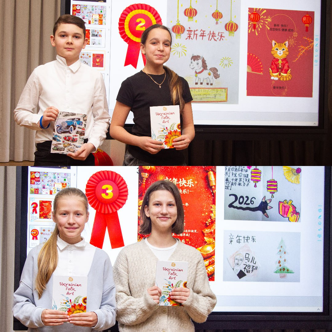 Під час заходу також відбулася виставка новорічних листівок, створених учнями, та урочисте нагородження. Окремо відзначили учнів 9–11 класів, які успішно склали міжнародний іспит HSK з китайської мови. Пам’ятні подарунки отримали наймолодші учні, які зробили свої перші кроки у вивченні китайської мови, а також ті, хто наполегливо продовжують вдосконалювати свої знання.