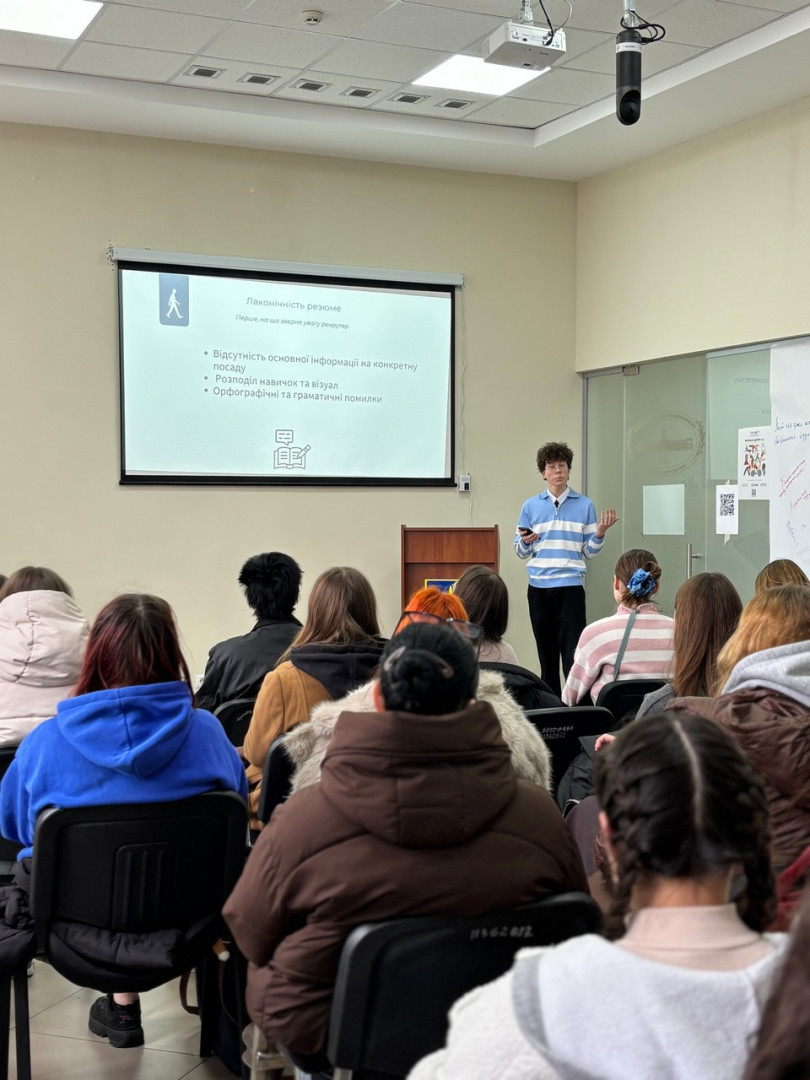 Під час зустрічі учасники детально розібрали структуру сучасного резюме, дізналися, як описати досвід навіть без офіційної роботи, правильно сформулювати hard і soft skills та уникати типових помилок, що знижують шанси на успіх.