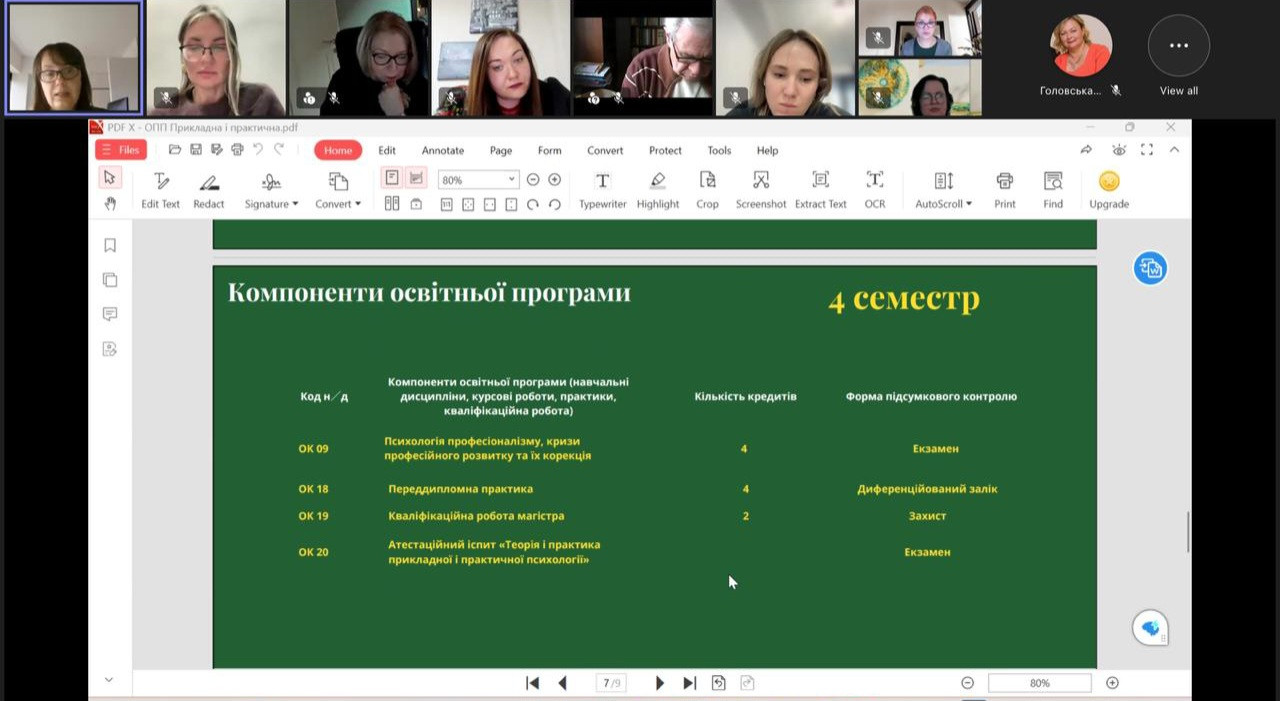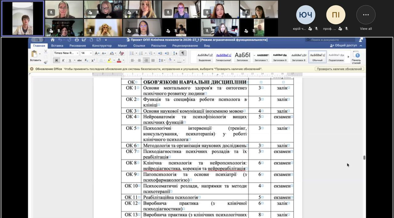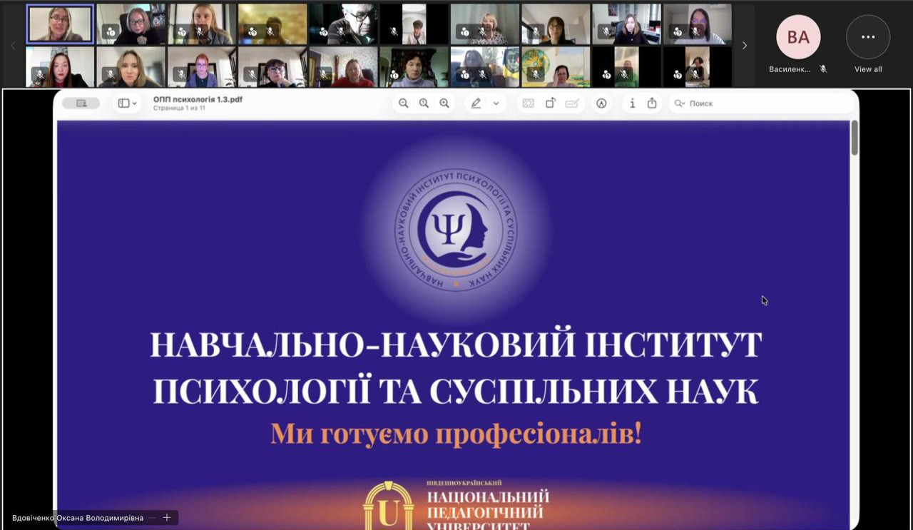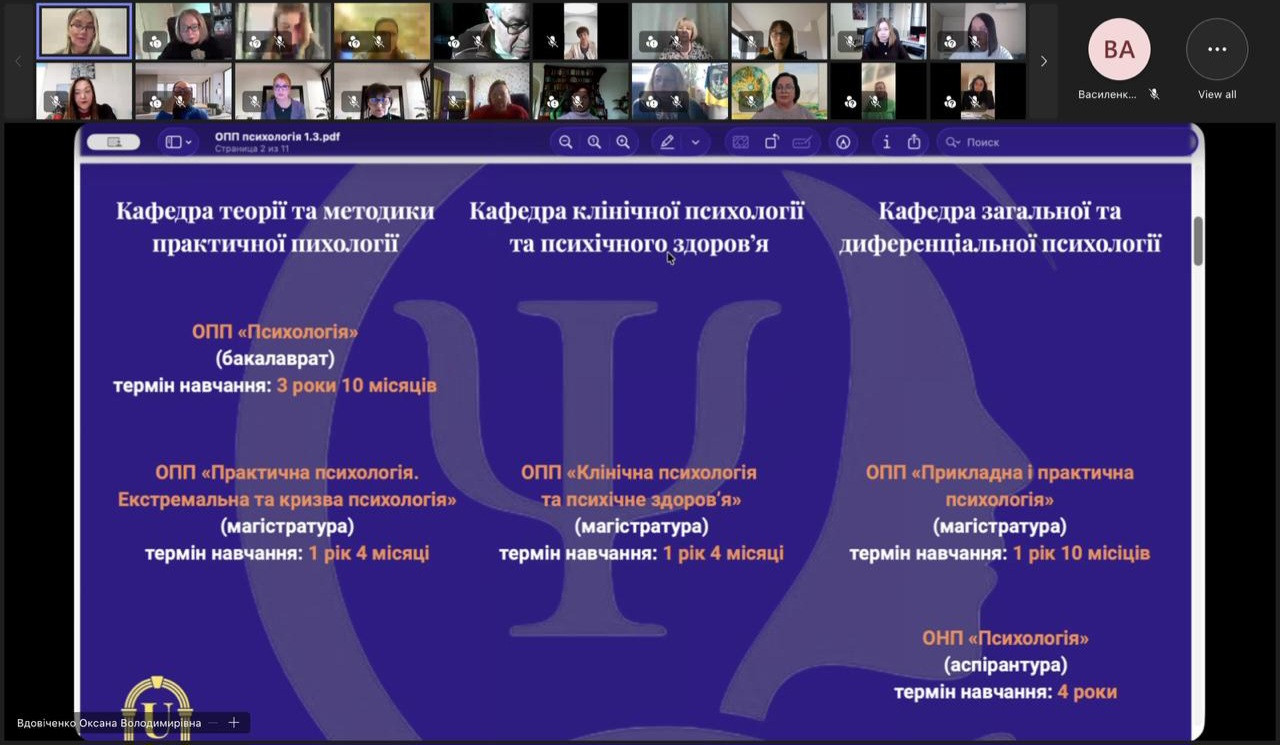 На зустрічі обговорювалися стан реалізації та проєкти освітніх програм усіх рівнів вищої освіти за спеціальністю С4 Психологія, які діють в Університеті Ушинського, а саме: