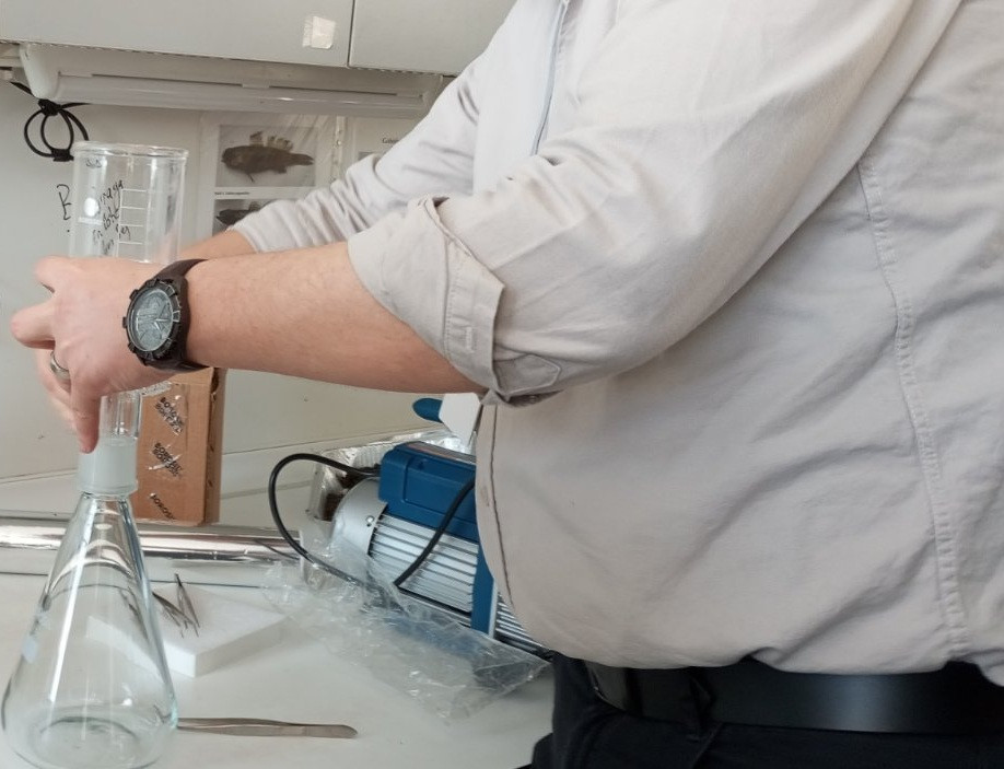 Після обідньої перерви робота продовжилася в лабораторії, де учасники пройшли навчання з аналізу зібраних зразків. Практичний блок охоплював ознайомлення з обладнанням, інструментами та витратними матеріалами, необхідними для дослідження, а також особливості роботи із зразками піску та води. Учасники мали змогу не лише ознайомитися з методикою, а й побачити на практиці, як здійснюється аналіз отриманих результатів.