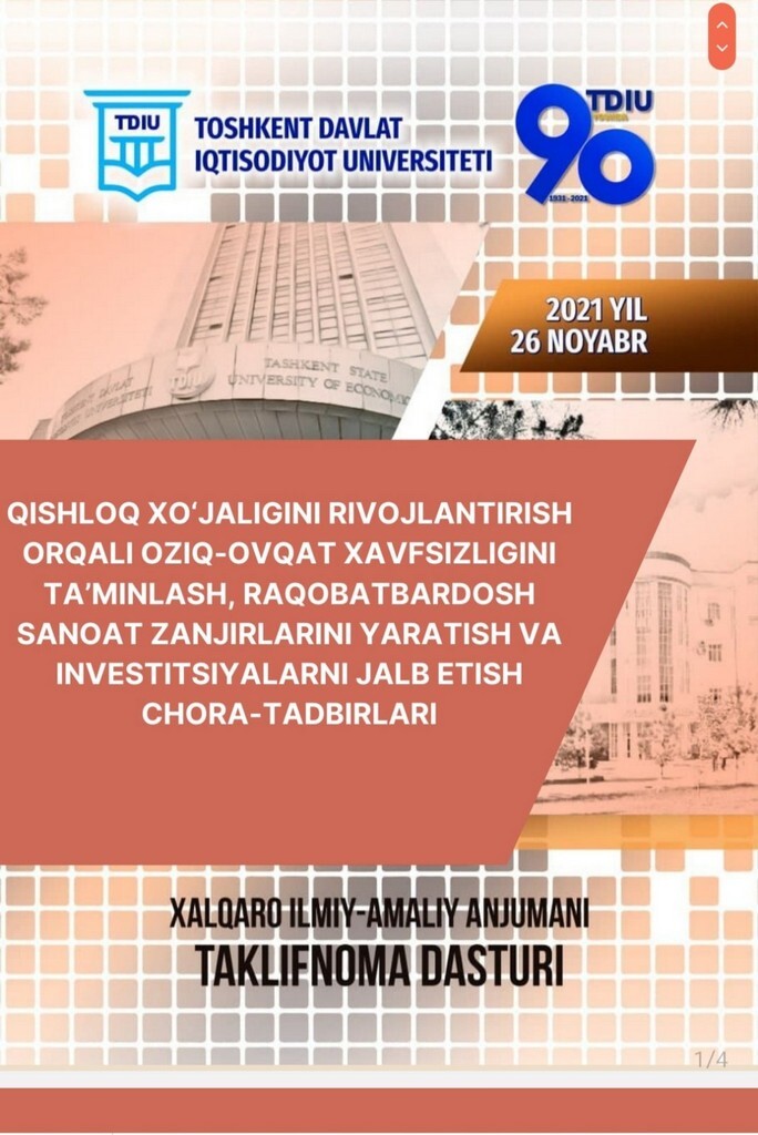 26 листопада 2021 року професор кафедри освітнього менеджменту та публічного управління Університету Ушинського М. М. Білинська взяла участь у міжнародній конференції «Роль сучасних освітніх закладів в інноваційному, соціально-економічному розвитку нового Узбекістану», яка проходила в Ташкентському державному економічному університеті (Республіка Узбекістан) з доповіддю «Роль національної резільєнтності у формуванні ефективного державного управління». Доповідь викликала зацікавленість присутніх, за результатами виступу відбулося обговорення основних питань державного управління в сучасних умовах. Було обговорено також шляхи подальшої академічної співпраці між закладами вищої освіти обох країн.