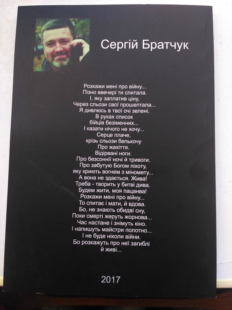 Відверта розмова підкріплювалася віршованими рядками, автором яких є сам Сергій Братчук. Його збірка «Війна у мирний час» написана під час війни та про війну. Як військовий журналіст Сергій Братчук відсняв документальне кіно про війну та військових, про добровольців та волонтерів, яке також було презентовано студентам.